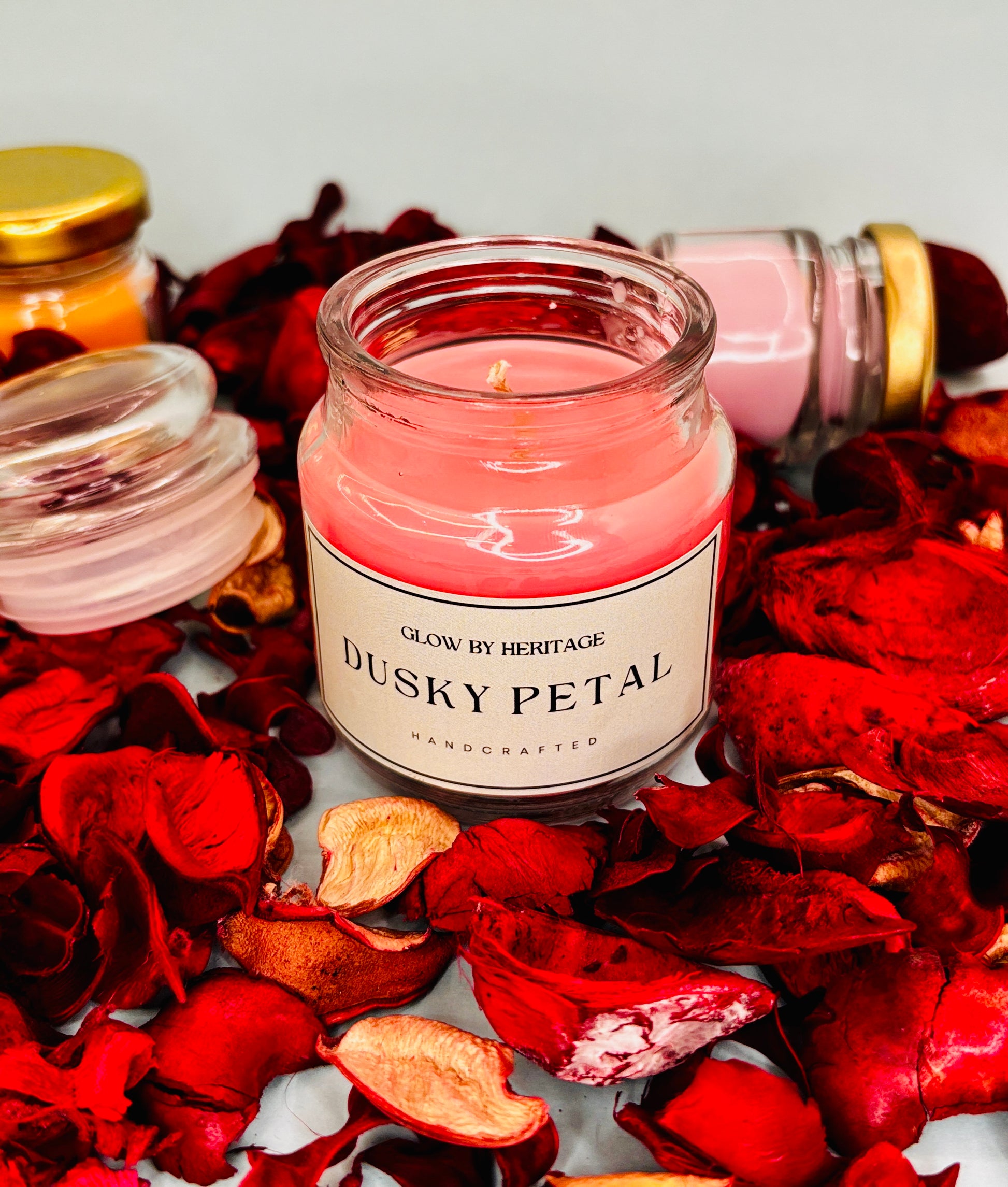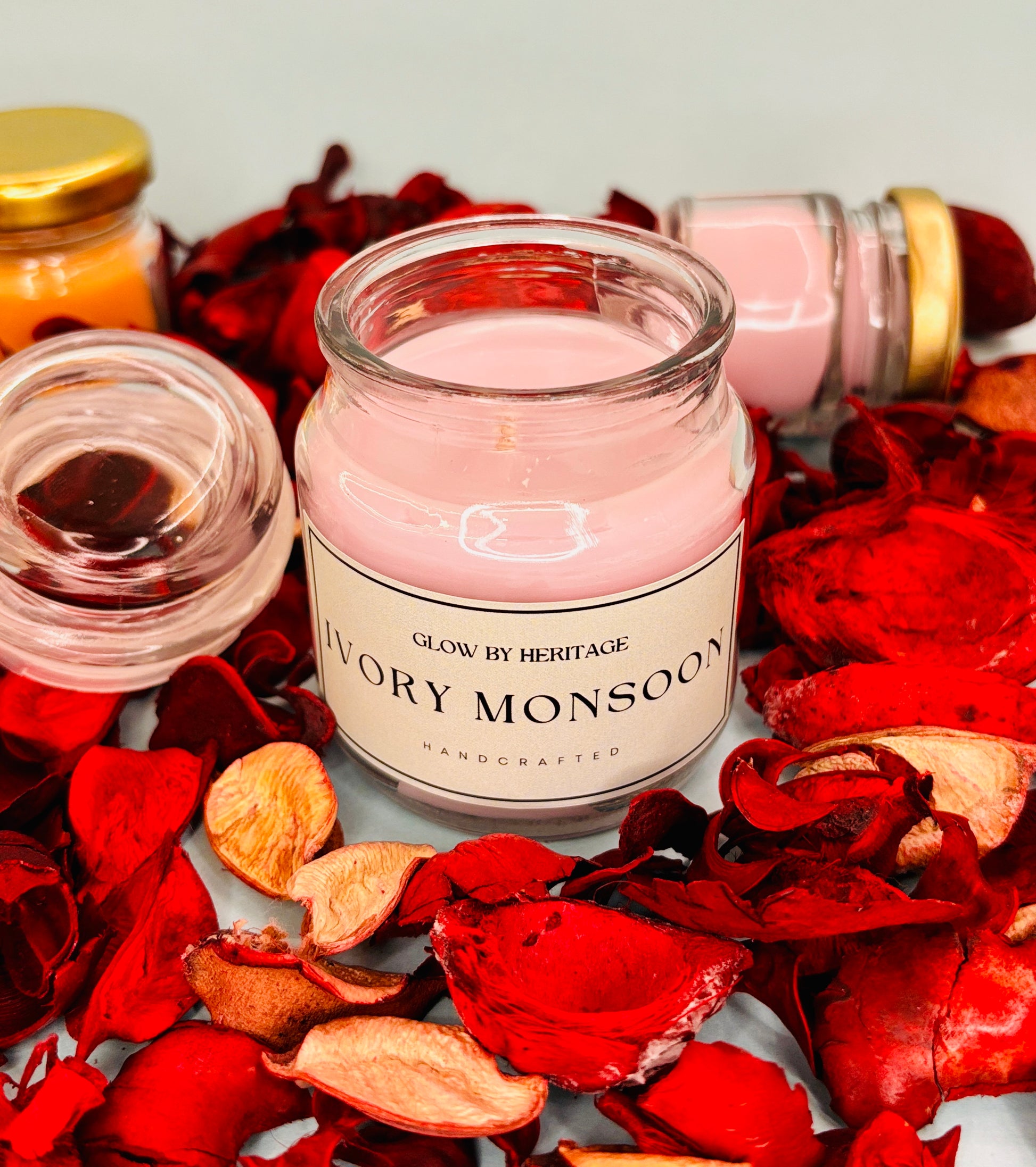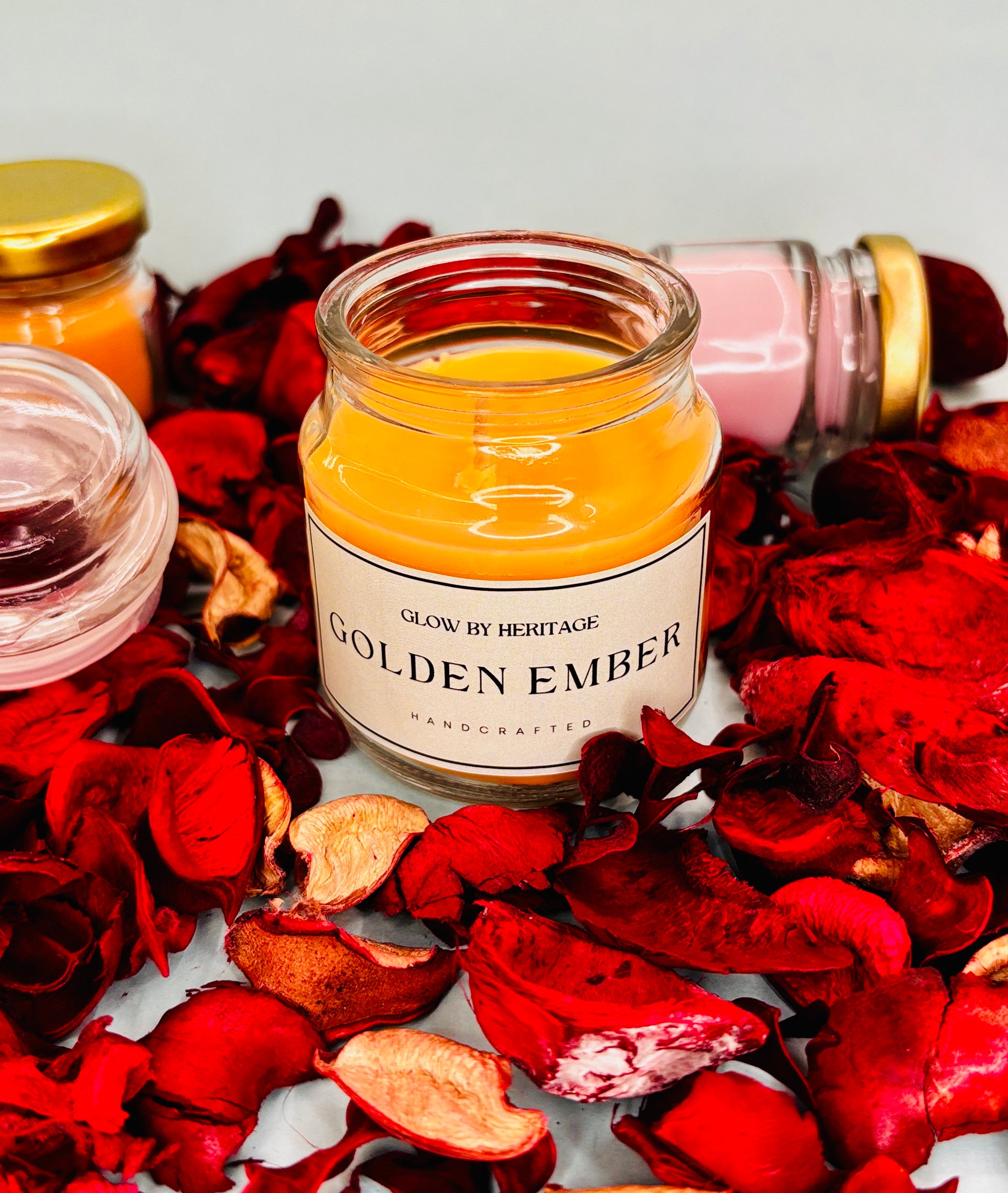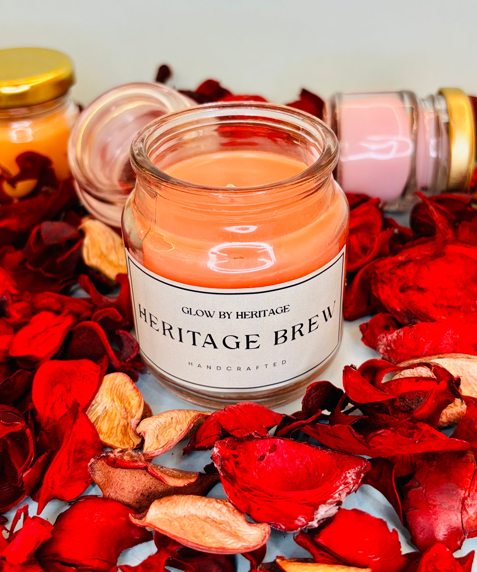 Experience the essence of Glow by Heritage with this curated set of four hand-poured classic pure soy aromatherapy candles (approx. 100ml each). Each candle is thoughtfully crafted and cured for 7 days to deliver a rich, lasting aroma in a compact form.